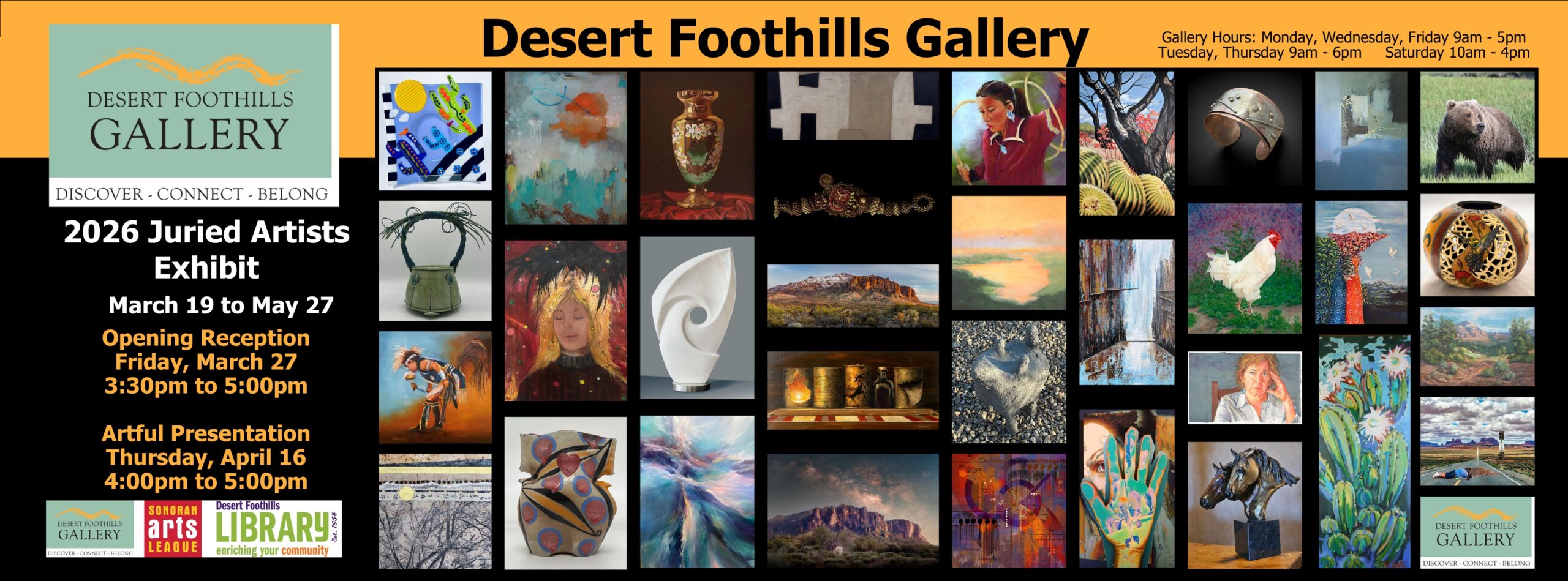 The Sonoran Arts League welcomes artists and students; art enthusiasts, patrons, collectors, and all those who are interested in supporting the arts. The League provides an environment where creative individuals with similar interests form alliances that benefit their work and support the community through art and educational programs. Join Us!